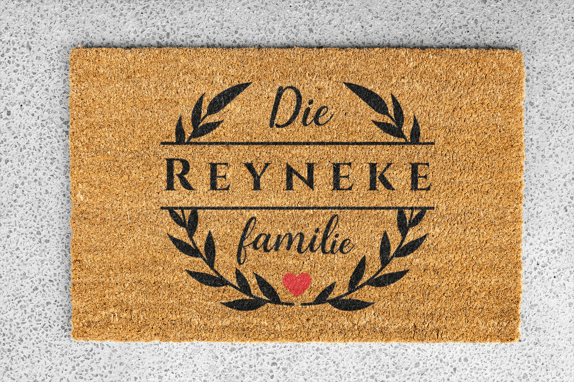 Welcome your guests in timeless style with our Laurel Family Name Doormat. Featuring your surname framed by a graceful laurel wreath, this design is a beautiful symbol of home, unity, and warmth. The bold family name at the center is complemented by elegant script details, creating the perfect balance between sophistication and charm.